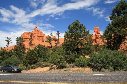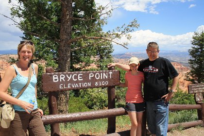Så blev det lørdag morgen, og vi tog afsted fra Kanap med retning mod Bryce Canyon. Vi ankom omkring middag, og tog shuttle bussen ind i området. Stod af de fremhævede steder bl.a. Bryce Point, hvor vi gik lidt ned ad Peek-a-boo Loop. Bryce er en meget anderledes canyon med de røde søjlelignende klipper – The Hoodoos. I Visitorcenter så vi en informativ film om Bryce Canyon, og her mødte vi børnehaveklasselæreren fra Sinding Skole og hendes familie. Både hende og hendes mand har haft Poul i skolen (i henholdsvis Simmelkær og Sinding skole). Efter en hurtig frokost ved bilen kørte vi videre mod Zion National Parc. Igen en meget anderledes canyon. Her kører man også med shuttle busser men modsat Grand Canyon og Bryce Canyon, hvor man kører langs overkanten og kigger (eller går!) ned, kører man her nede i bunden langs Virgin River og kigger op. Her er det meget frodigt og med høj luftfugtighed. Den 11 km lange bustur vender ved Temple of Sinawava, hvor vi stod af og gik langs floden længere ind i kløften. Det blev faktisk ret sent, før vi kom tilbage til bilen, og inden vi var helt ude af Zion, var det blevet mørkt. Vi ramte Page sent i aften, hvor Motel 6 havde et værelse klar til os.