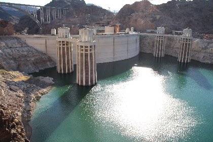 Vi er nu tilbage på Route 66. Vi startede ud fra Motel 6 i Williams med retning mod Seligman. Her mødte os en meget sjov oplevelse ved Snow Cap Drive-in. Og vi fandt Jensen Danmark’s klistermærke med Walther. Helt fantastiske burgere og en masse sjov med ejeren. Videre til Grand Canyon Caverns. Route 66 førte os videre til Hackberry. Her er Hackberry General Store. En sjov blanding af historie, landhandel, souvenirs og ikke mindst en rød Chevrolet Corvette. Derfra til Kingman og et rigtig godt Route 66 museum (bygget over bl.a. John Steinbeck’s roman ”Vredens druer”) indrettet i et gammelt elværk. Nu drejer vi af mod nord….mod Las Vegas. Først gør vi holdt ved Hoover Dam.