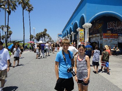 Så først op ad dagen – lørdag - kom vi afsted. Vi tog til Venice Beach. Et meget populært sted med skaters, musik af forskellig kvalitet, smykke-boder, t-shirts-forretninger, snackbarer, bodybuildere, tryllekunstnere, artister, kunstnere osv.osv. Der er hele tiden noget at kigge på og opleve, så vi endte med at bruge hele dagen der. Cecilie og Kristoffer fik også lige dyppet tæerne i Stillehavet. Men de er nok blevet lidt for forvænt med pool, for de synes det var for koldt. Vel hjemme igen til aften slappede vi af ved poolen med lækker frugt og is…..og måske lige en enkelt Bud Light ….Så en film ”The Jerk” med Steve Martin….hylende morsom….